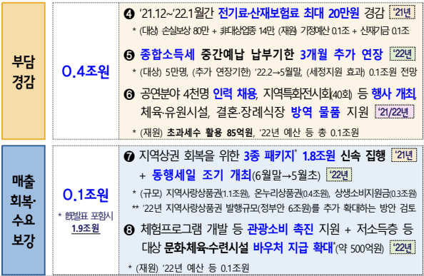셋째, (매출회복, 0.1조원) 문화·체육·수련시설 이용권*(약 500억원) 등 지급