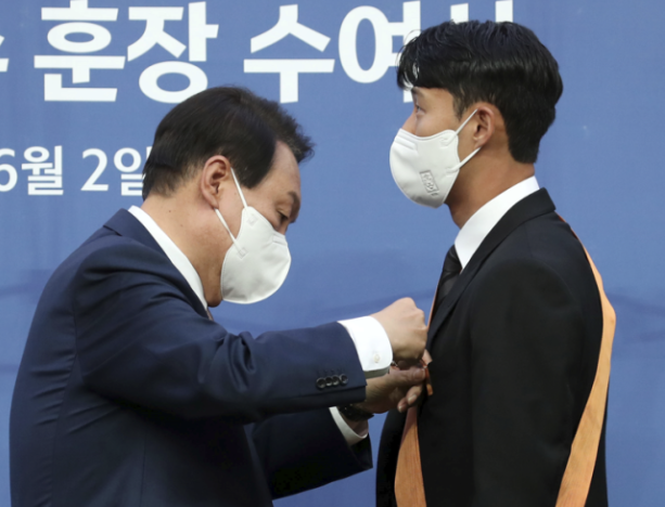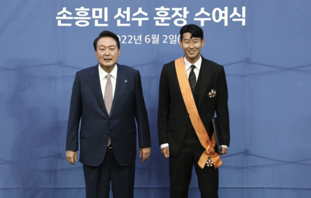 대통령실은 "손흥민 선수는 그동안 국가대표로서 월드컵 최다 골을 기록하고 2018년 아시안게임에서 금메달을 획득하는 등 대한민국 축구 발전에 기여했다."며 "아시아인 최초 유립 빅리그 100골 돌파, 프리미어리그 이달의 선수상 3회 수상, 프리미어리그 득점왕 등을 달성해 국가의 위상을 높였을 뿐만 아니라, 코로나19로 힘든 시기에 국민들에게 큰 감동과 자부심을 선사했다."라고 전했습니다.