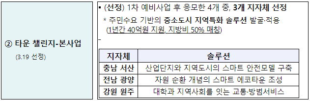 □ 「스마트 챌린지」 시티형 예비사업 대상지의 주요내용은 다음과 같다.