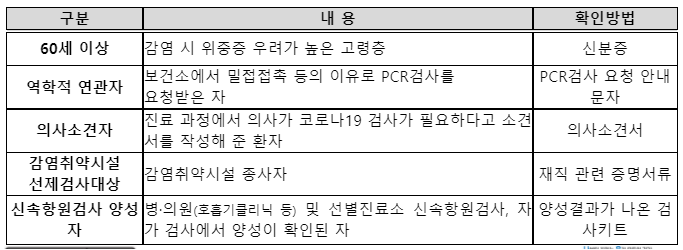 <PCR 검사 우선순위 대상자>