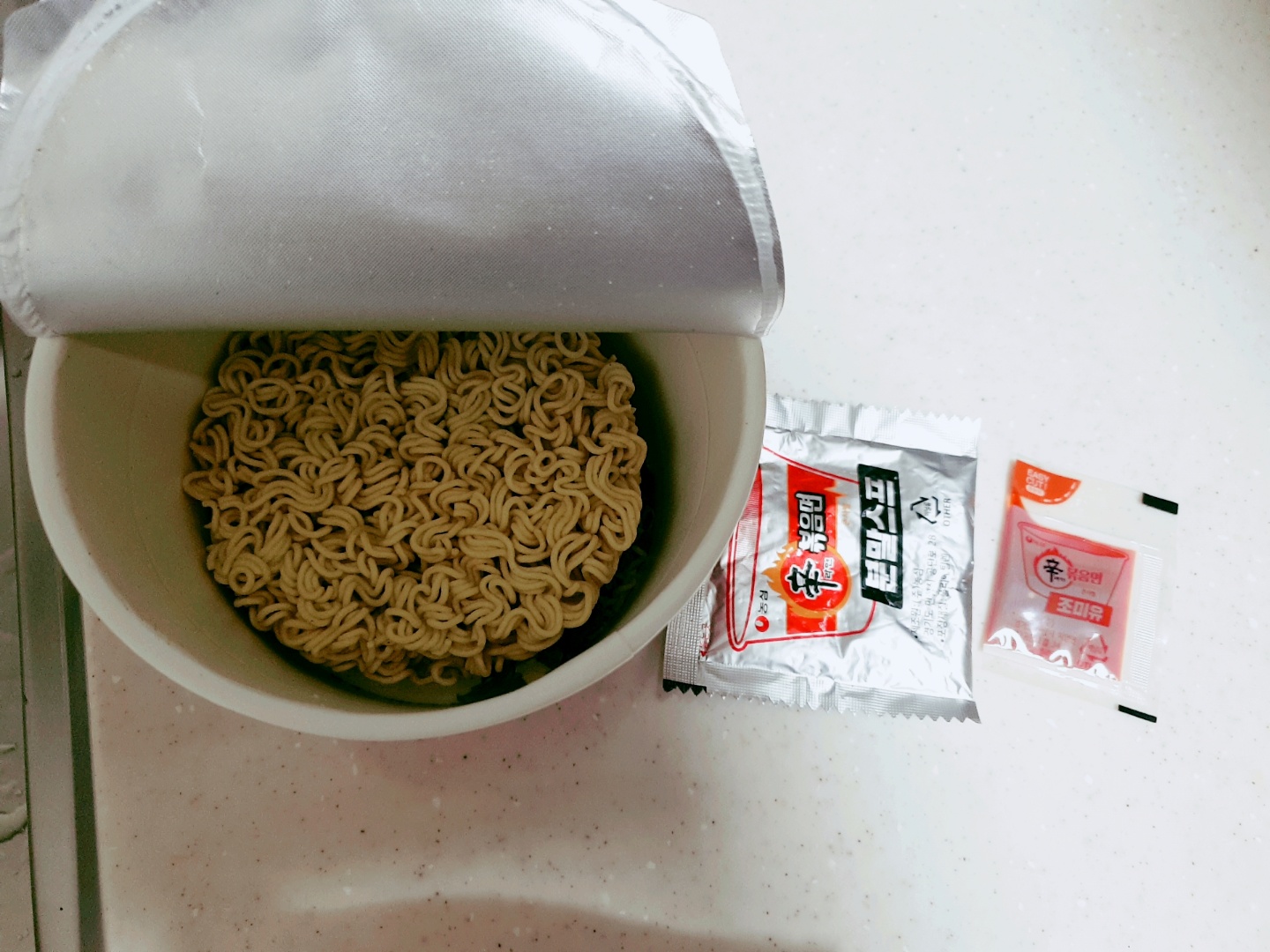 자~ 이제 신라면 볶음면(신볶음면) 컵라면이 준비가 다 되었으니 맛을 볼 차례입니다.