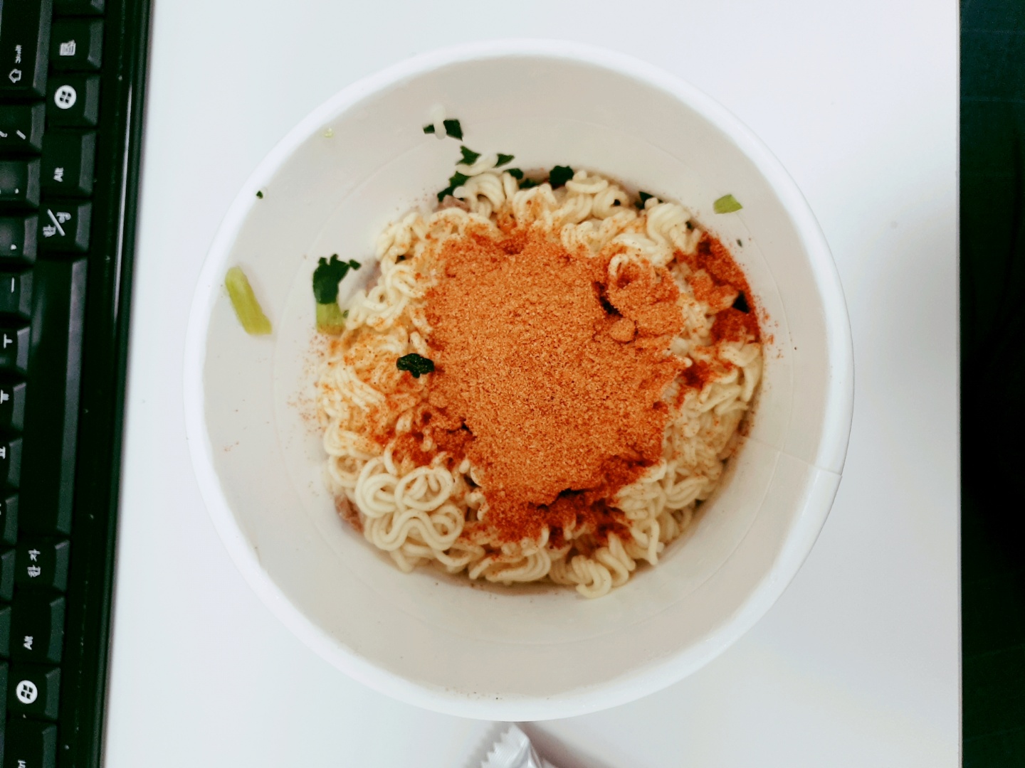 4. 분말 스프와, 조미유를 넣고 쉑키 쉑키 섞어서 먹으면 됩니다.