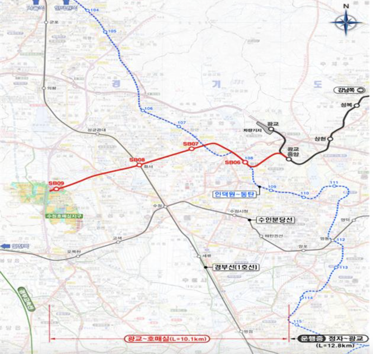 ◈ 신분당선 광교중앙역∼수원호매실 10.1km, 4개 정거장 신설