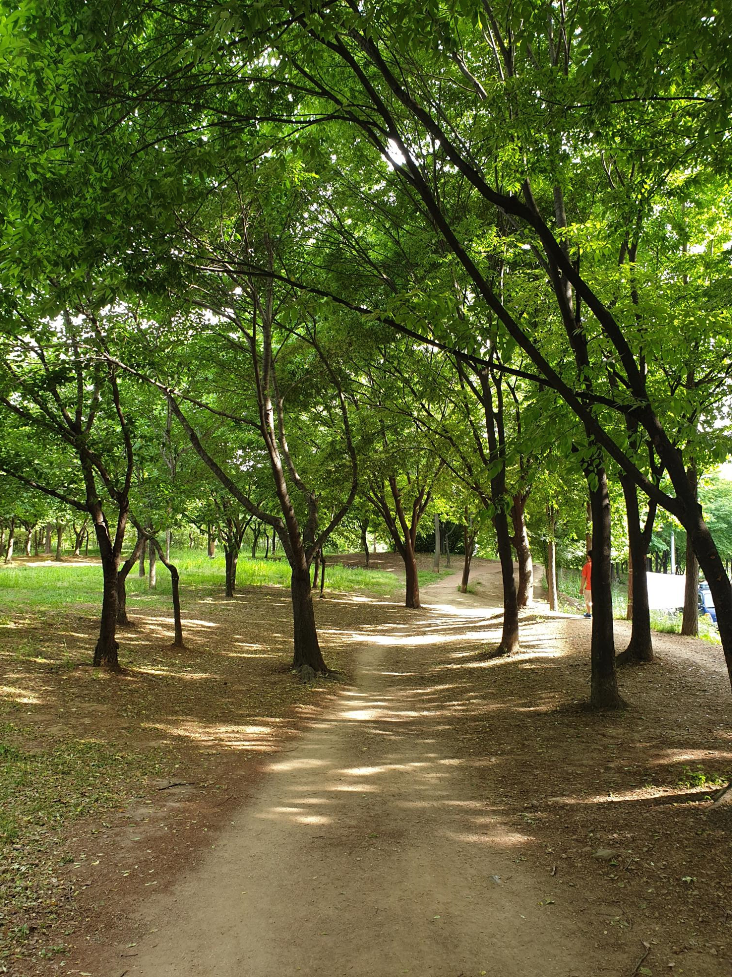 공원에 도착했습니다. 사람이 너무 많지도 적지도