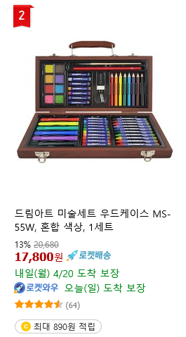 - (가운데) 쿠팡 2위도 역시 색칠에 대한 선물입니다.