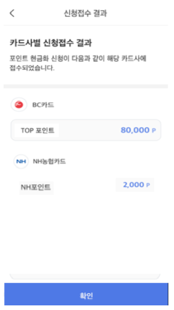 4. 카드사별로 은행 등과의 제휴관계 등에 따라 포인트 입금 시점이 다를 수 있으니 앱에서 관련 안내 사항을 확인하시길 바랍니다.