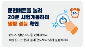 - 하지만, 자가 점검 후에도 에어컨에 이상이 있거나 안전사고의 우려가 있는 경우에는 제조사의 안전점검을 받도록 한다.