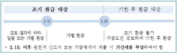 * 개별환급 확정일(3.26.) 이후 신청하는 경우 조기 지급 불가능