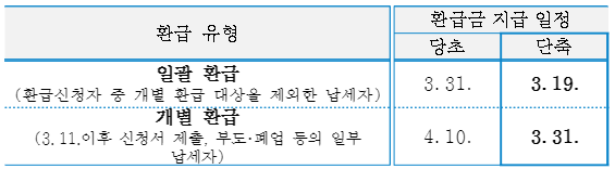 *(일괄환급)당초3.31.3.19. (개별환급)당초4.10.3.31.