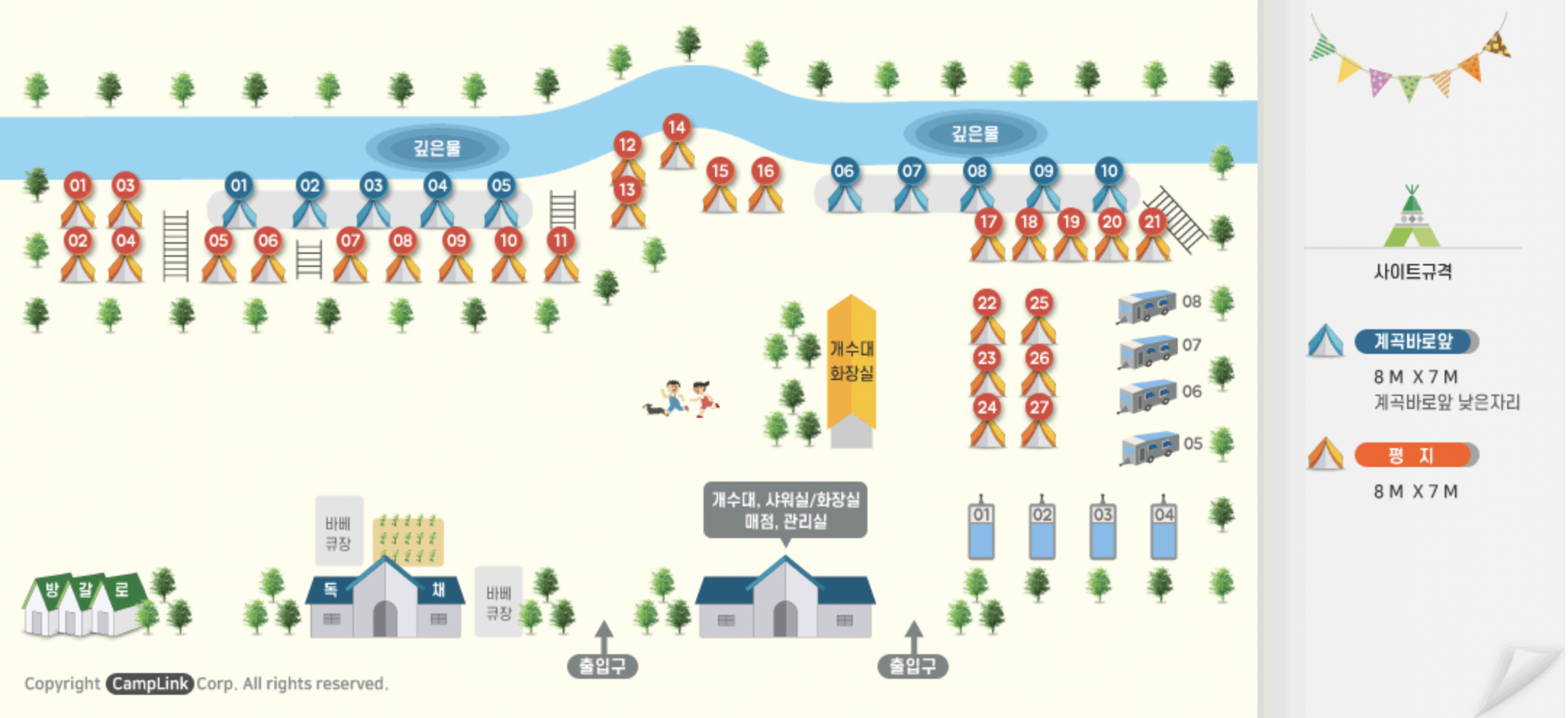 - 계곡사이트는 나무로 인해서 평지 사이트보다 조금 작습니다.