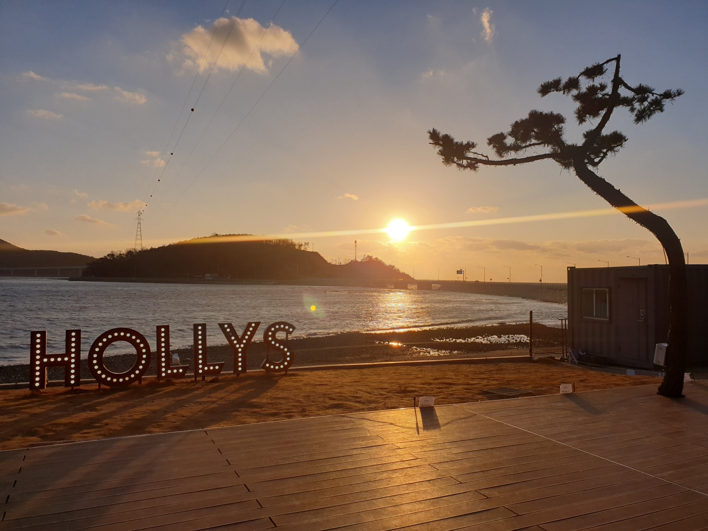 할리스 문구와 일몰 그리고 소나무의 조화~~ 정말 환상적인 것 같아요~