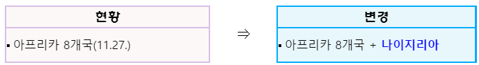 ※ (9개국) 나미비아, 남아공, 모잠비크, 레소토, 말라위, 보츠와나, 에스와티니, 짐바브웨, 나이지리아