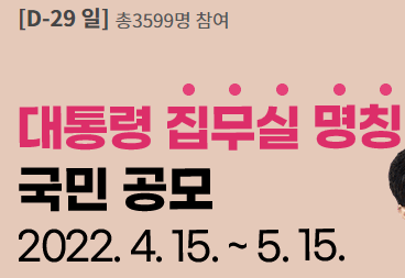 용산 대통령 집무실 이름 공모는 대한민국 국민이라면 누구나 참여 가능하며, 기간은 5월 15일까지 진행됩니다.