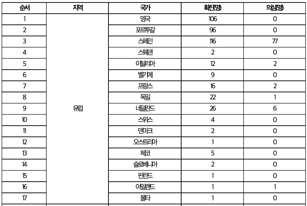 원숭이두창은 5월 31일 기준 31개국에서 473명의 확진자와 136명의 의심자가 보고되어 있으며 5월 이후 영국, 스페인, 포트투갈, 독일, 프랑스, 캐나다, 미국 등 풍토병이 아닌 국가에서 이례적으로 발생하고 있는 상황입니다.
