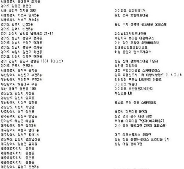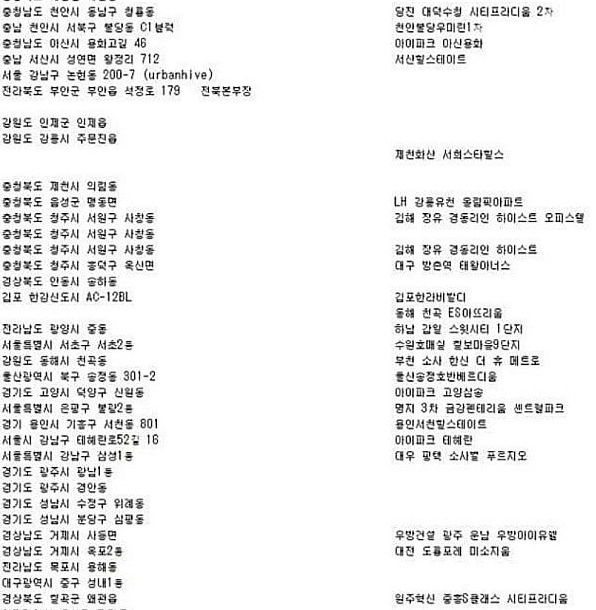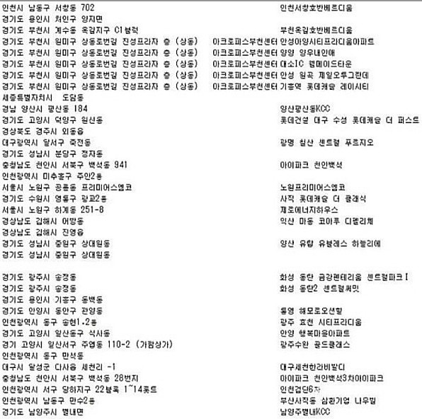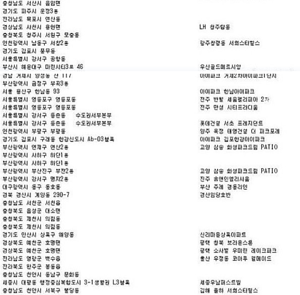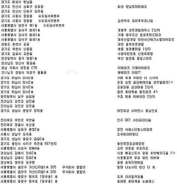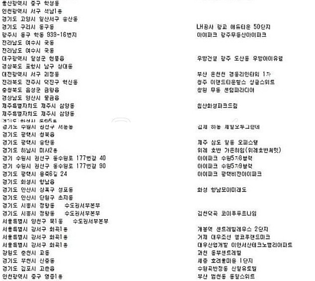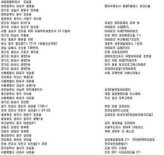 우선 인터넷 상 유포되고 있는 월패드 해킹 아파트 명단, 리스트를 본글 맨 아래에 달아 놓겠습니다. 참고로 아직 전부 조사되어서 밝혀진 것은 아니고 조사 진행 중입니다.