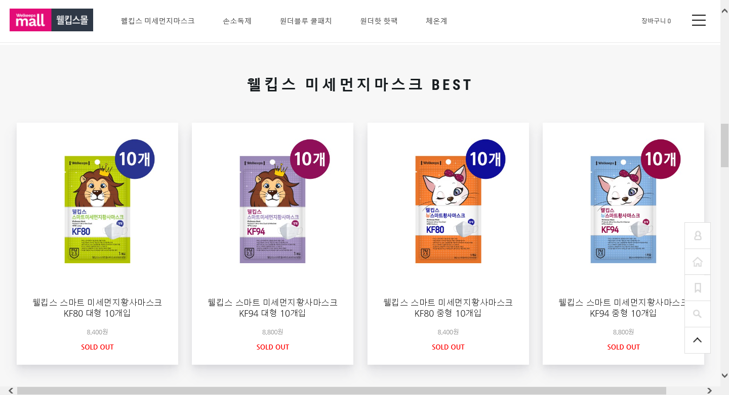한편, 웰킵스 공식 쇼핑몰은 '웰킵스몰'과 '웰킵스 스마트스토어' 두곳입니다.