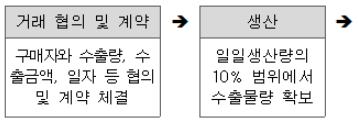 ※ 당일 생산량의 10%를 초과하는 물량의 경우 수출 물량이 될 때까지 일일 생산량에서 10%씩 모아야 함