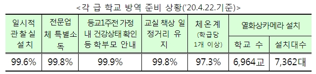 <각 급 학교 방역 준비 상황(’20.4.22.기준)>