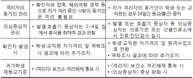 고3은 진로‧진학 준비 등을 고려하여 7일 경과 시점부터 등교 수업 가능