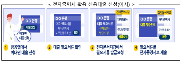 자세한 사항은 행정안전부에서 보도한 "신용대출 신청, 예금 계좌 개설 등 전자증명서로 방문 없이 한 번에 해결!"을 참고하시기 바랍니다. ㅎㅎ