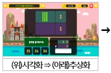 특히 학습 콘텐츠는 수학적 개념과 원리를 쉽게 이해할 수 있도록 시각화된 그림에서 추상화된 기호수식 순서로 단계적으로 제시하였다.
