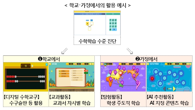 ㅇ 초등학교 저학년(1, 2학년)이 학교에서는 수준별 개별화 학습, 가정에서는 자기 주도적 학습을 함께 할 수 있도록 인공지능(AI)을 활용한 똑똑! 수학탐험대」 서비스를 914()부터 전국 모든 초등학교에 제공한다.