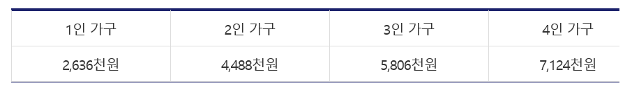 <하위소득 70% 이하 가구원별 지원 액수>