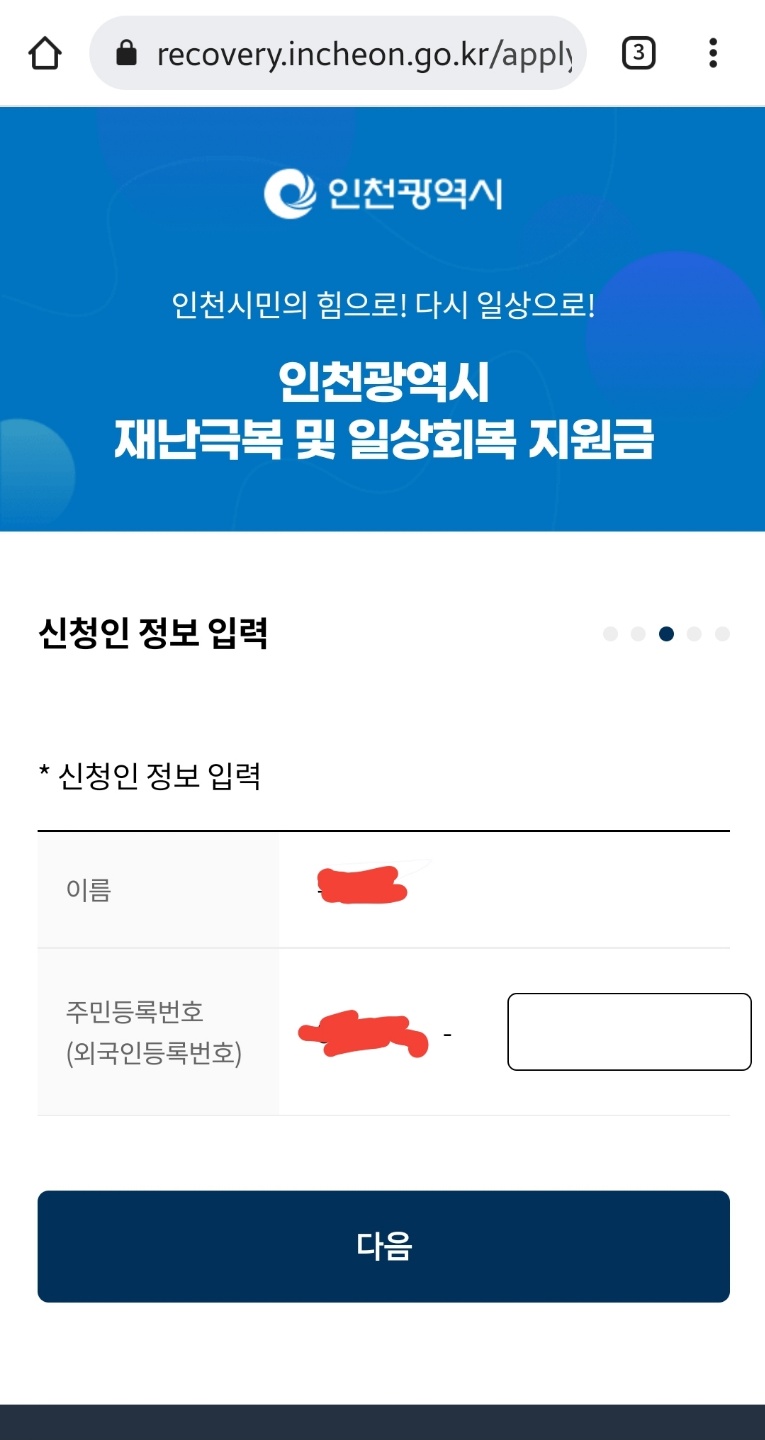 인천시 일상회복지원금 온라인 신청 후기