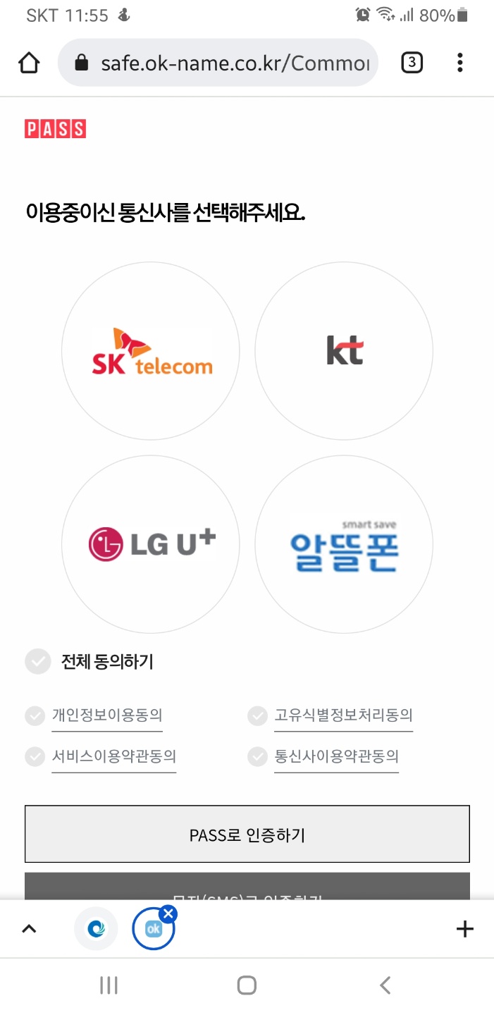4) 다음으로 약관동의란이 나옵니다. 동의로 체크해주세요~