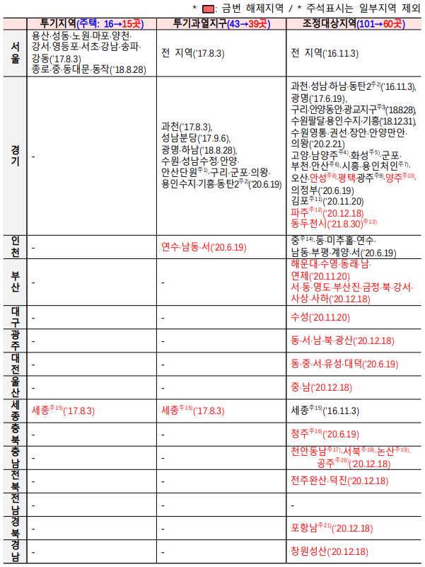투기과열지구-투기지역-조정대상지역-해제