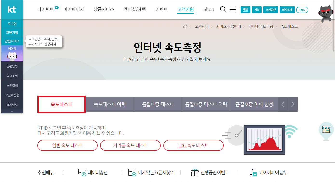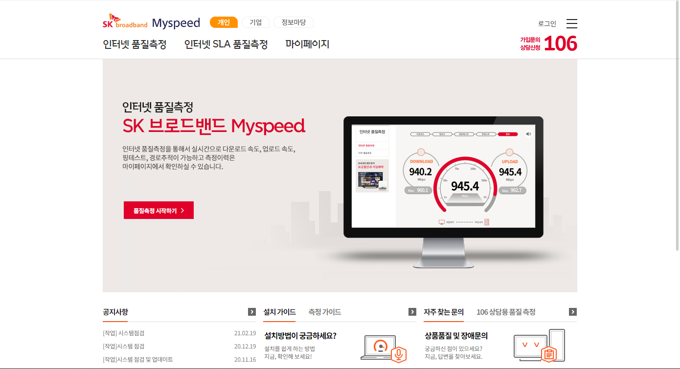 첫째, 각 통신사 홈페이지르 통한 속도 측정 방법입니다.
