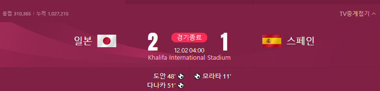 일본 스페인 경기, 16강 진출 확정 하이라이트 영상 바로가기!