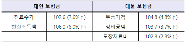 ㅇ (개선) 자동차보험금에 크게 영향을 미치는 원가요소*를 선별하여 객관적 통계에 기초한 원가지수를 산출·공표(보험개발원)