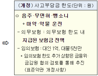 * 의무보험 구상 상향(대인 300만원→1,000만원, 대물 100만원→500만원)