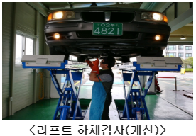 (개선) 피트 또는 리프트 선택적 설치를 허용하고, 적극행정차원에서 법령개정 전까지 교통안전공단 검사에 대해 우선적용할 예정이다.