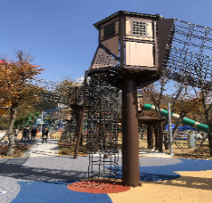 ㅇ 고급소재의 놀이기구로 색채 및 시각적 측면에서 감성과 호기심을 유발할 수 있도록 개미타워, 스파이더 넷 타워 및 무지개 그네 등 특색있고 다양한 형상의 기구들로 구성되어 있음