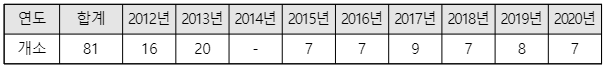 ○ 지난 2012년 16개소를 시작으로 올해까지 총 81개소가 선정되었다.