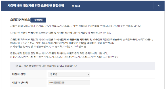 ○ 신청할 때 개인정보 활용 및 행정정보 공동이용에 동의하면 요금감면 자격 여부를 자동으로 검증해 따로 증명서를 제출할 필요가 없다.