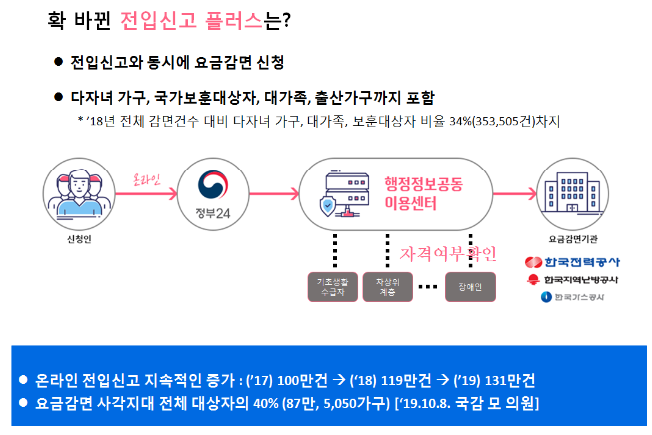 "전기요금 등 요금감면 신청, 전입신고할 때 같이 하세요"