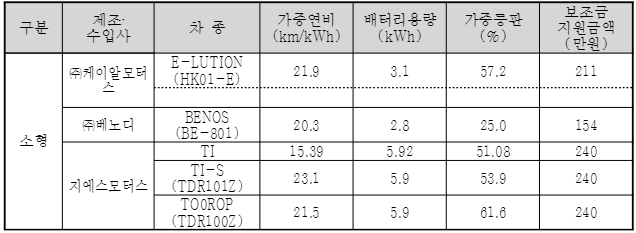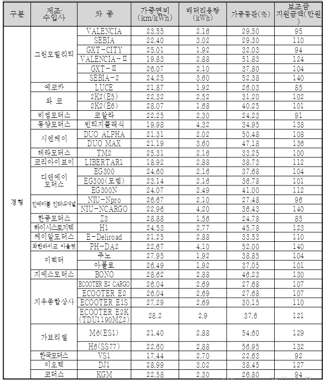 2022년 친환경 전기이륜차 보조금 지원대상 현황