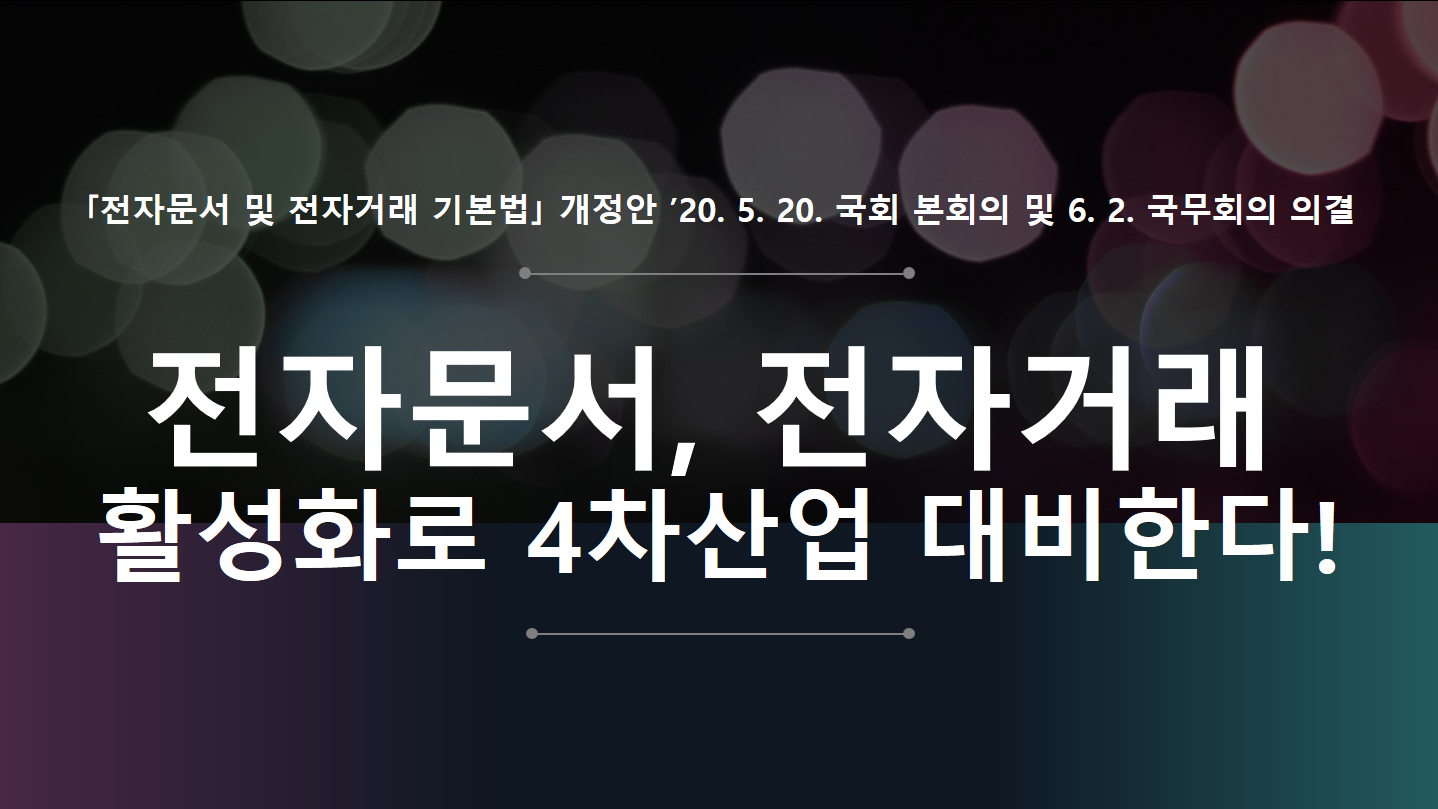 - 「전자문서 및 전자거래 기본법」 개정안 ’20. 5. 20. 국회 본회의 및 6. 2. 국무회의 의결