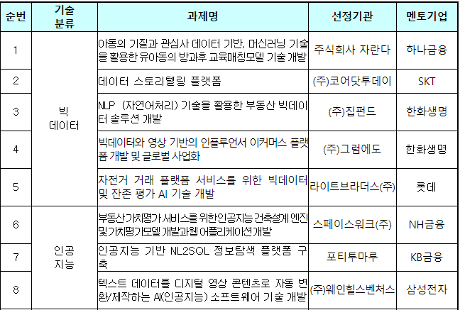 ‘민관협력기반ICT스타트업육성’ 사업 신규 선정과제