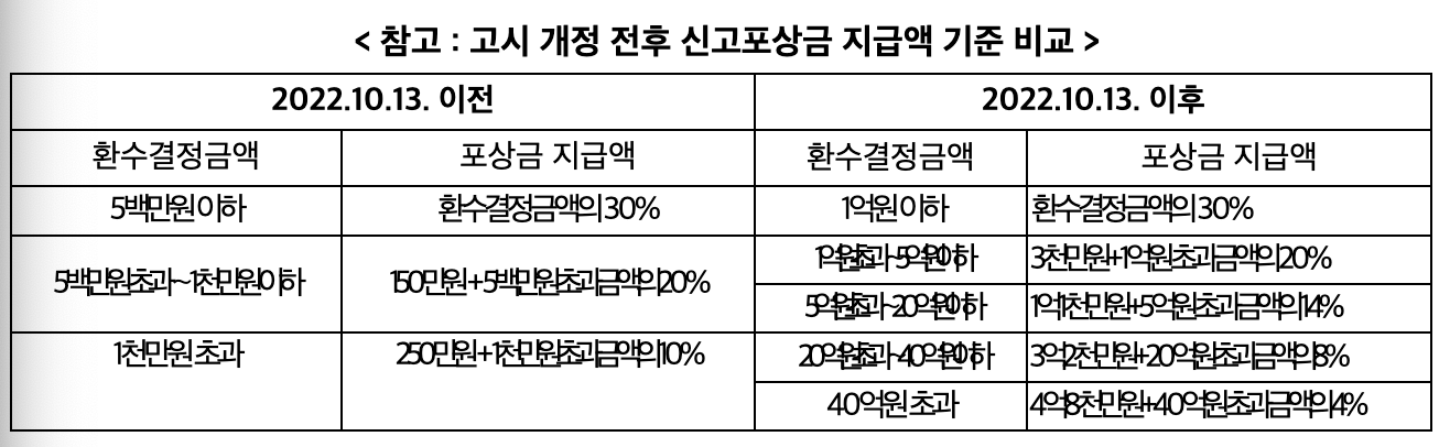 2022년에 복지 보조금 부정수급 신고 포상금 지급액에 대한 기준과 확대 내용은 아래의 표를 참고하세요!