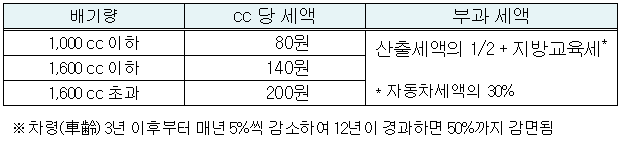 기준은 배기량에 따라서 계산을 합니다.