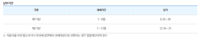 다만, 상반기에 신차를 구입했거나, 중고차를 이전받은 경우에는 취득일부터 6월 말까지 소유한 기간에 대해 일할 계산된 금액이 부과된다.
