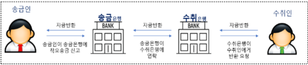 - 다만, 수취인이 이용하고 있는 간편송금업자의 계정으로 송금*한 경우 등에는, 예보가 수취인의 실지명의(이름과 주민등록번호 등)를 확인할 수가 없으므로 반환지원 신청 대상에서 제외됩니다.