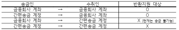 - 다만, 수취인이 이용하고 있는 간편송금업자의 계정으로 송금*한 경우 등에는, 예보가 수취인의 실지명의(이름과 주민등록번호 등)를 확인할 수가 없으므로 반환지원 신청 대상에서 제외됩니다.