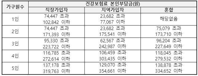 - 3개월 동안 사업신청에 포함된 가족 구성원의 건강보험료 부과액 합계 평균으로 산정