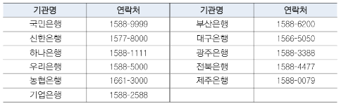 <은행별 대표 콜센터>