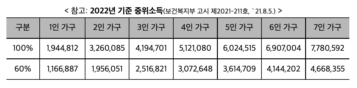-> 저소득이라 함은 청년가구 중위소득 60% 이하 그리고 원가구 중위소득 100% 이하